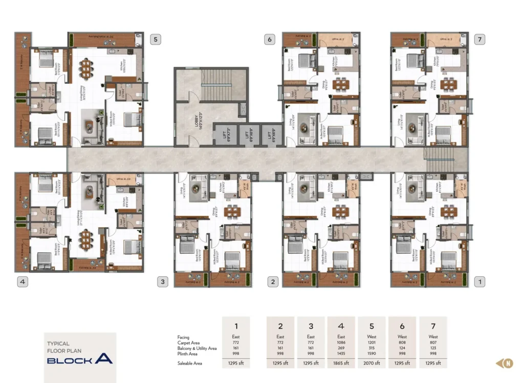 Balcony / Utility: 1’x1′ anti-skid vitrified ceramic tiles.